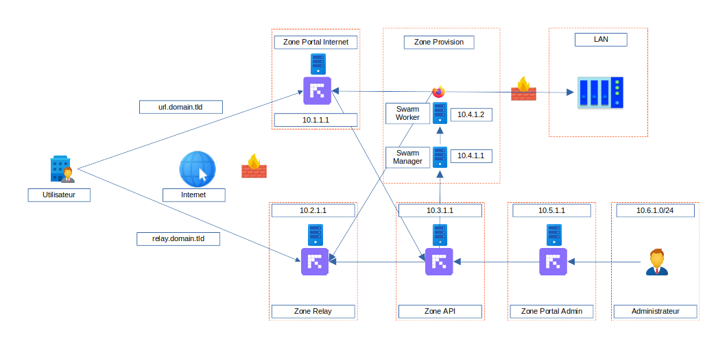 Overview of the infrastructure for a Bastion+ installation with a dedicated Portal¶