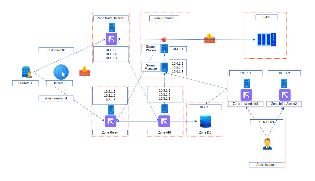 Overview of the infrastructure for a Bastion+ installation with a Dedicated Portal and External DB¶