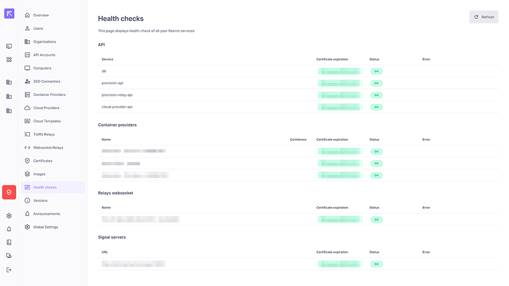 Monitoring this page allows administrators to anticipate problems (expired certificates, unavailable services, etc.) and ensure service continuity.
