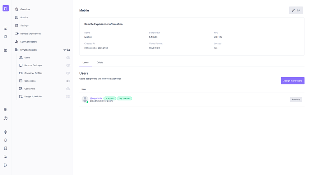 Assigning users to a Remote Experience¶