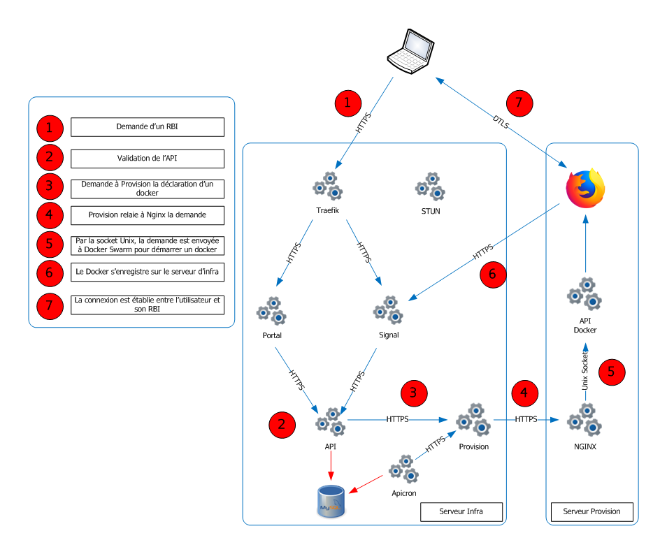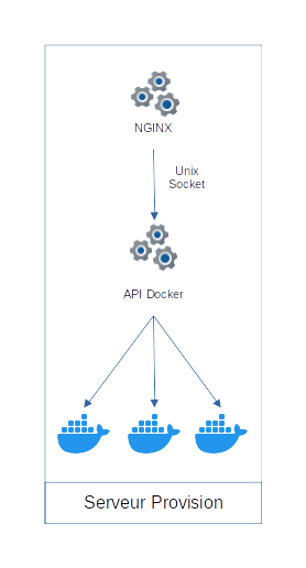 Redirection by NGINX The Provision server receives the request and forwards it to the Docker API via its NGINX frontend.