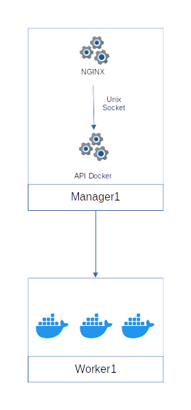 Communication between internal components (NGINX and Docker API) never transits over the network but remains local through a Unix Socket, reducing the attack surface.